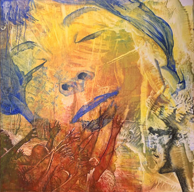 5. Sphinx, quae ignem esputat (Esfinge lanza fuegos) (2019). Oleo sobre tabla, 100 x 100.